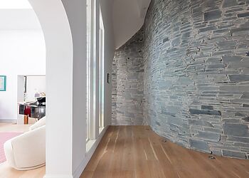 - Exposed stone walls add character