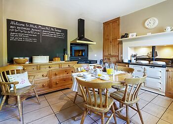 - Wood-burning stove and Aga kitchen